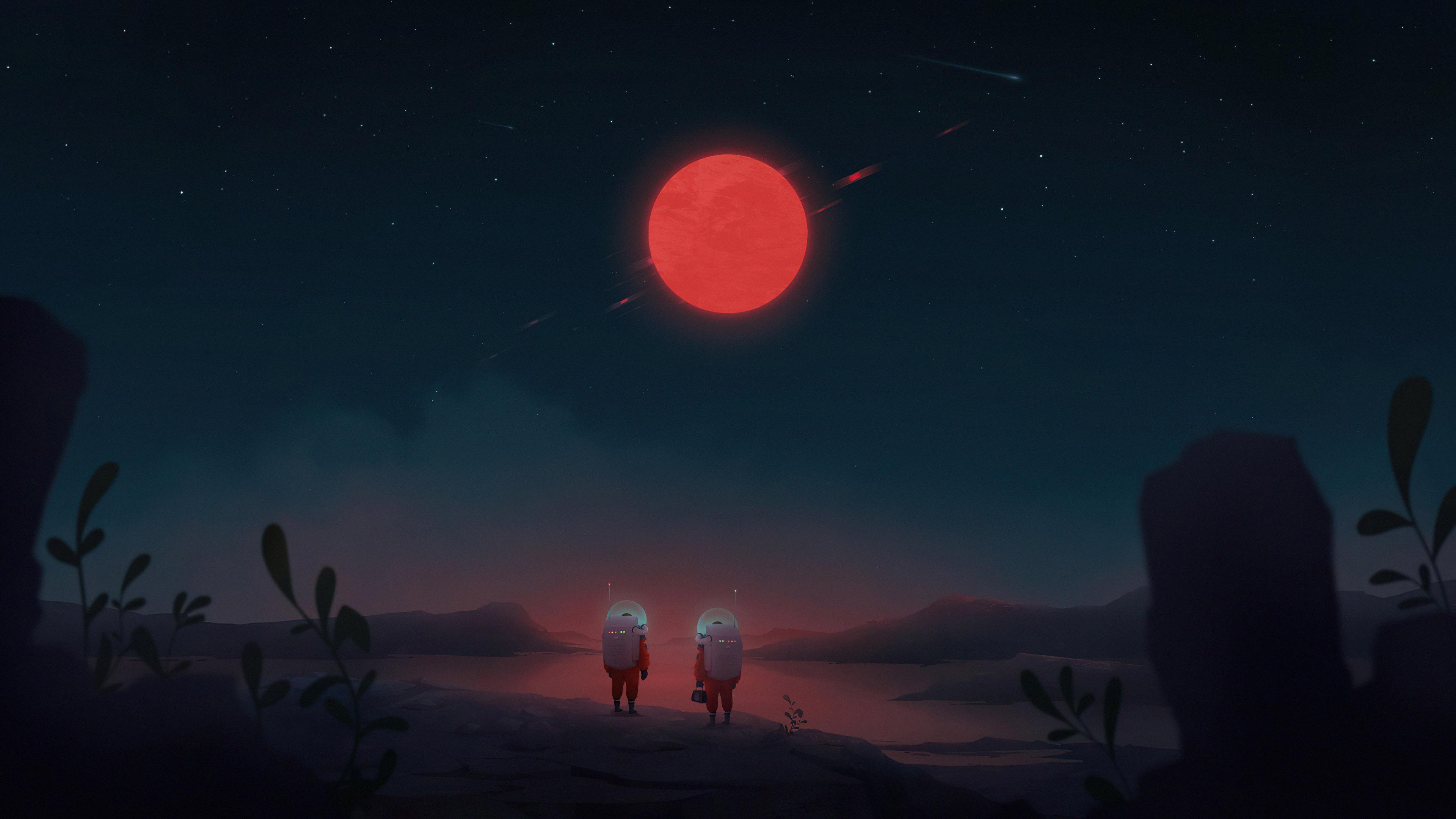 Red Planet With Three Figures